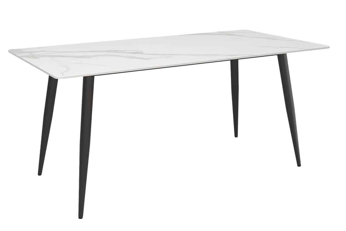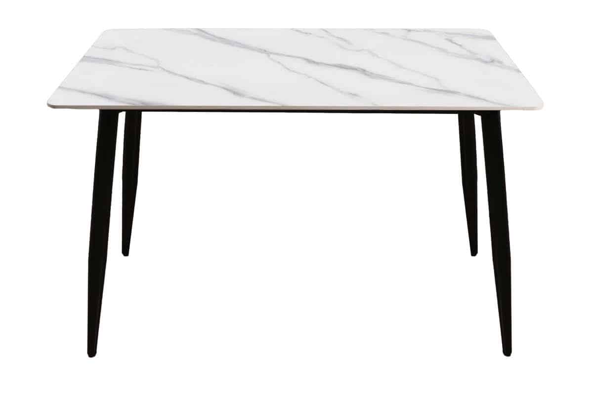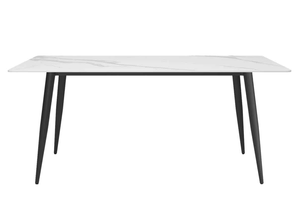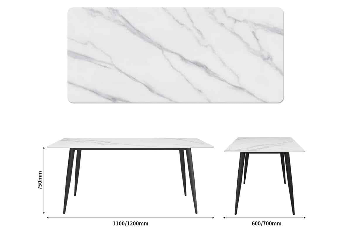 השולחן משלב גוונים נקיים של לבן עם ורידים עדינים בגוון אפור, המדמים שיש אמיתי. עיצובו מתאים לחללים בהירים ומודרניים, ויוצר תחושת רוגע ויוקרה.