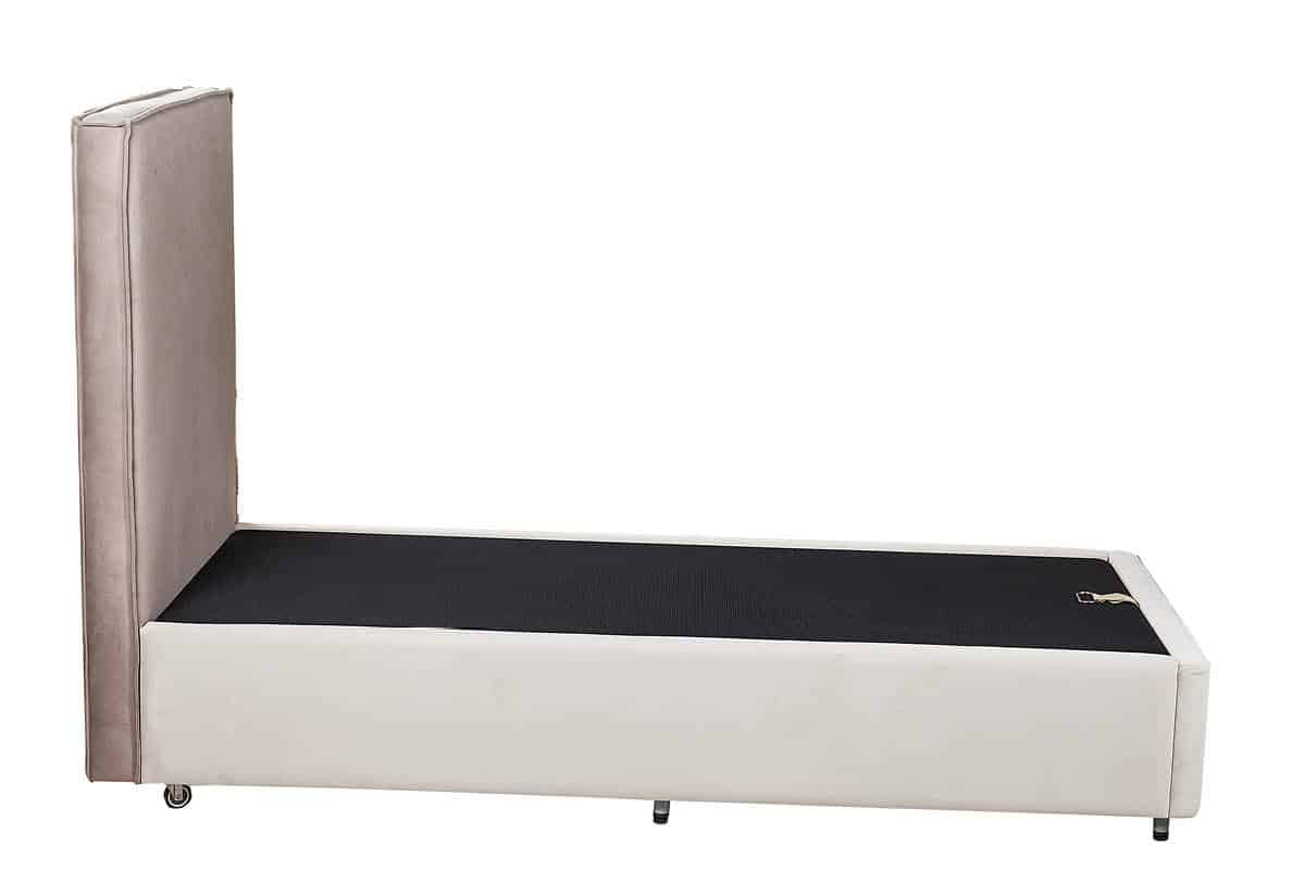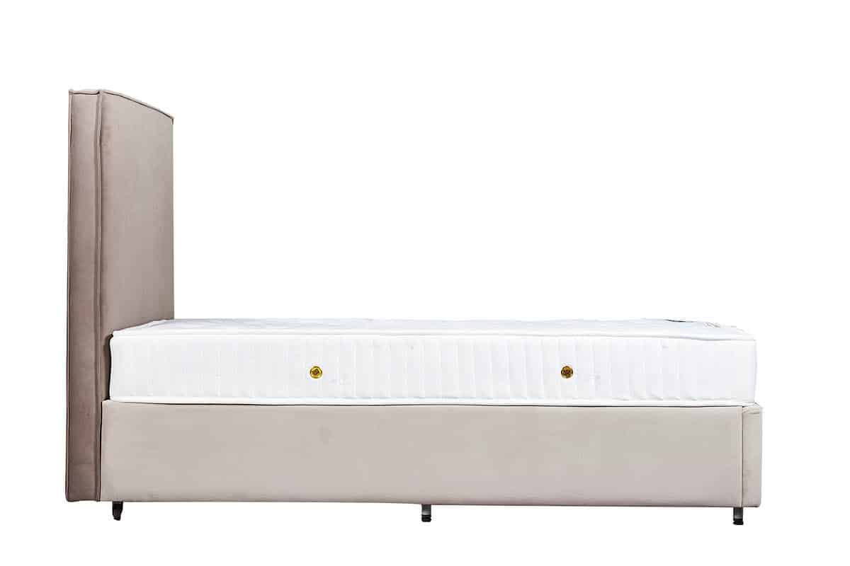 מסגרת מיטה: ריפוד מלא בצבע בהיר, קווים ישרים ללא בליטות.