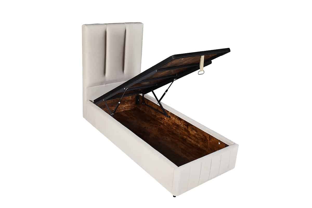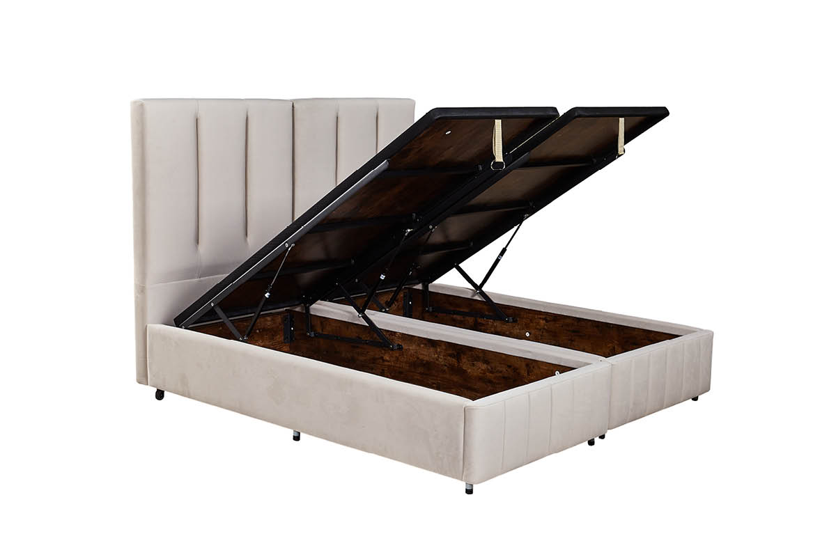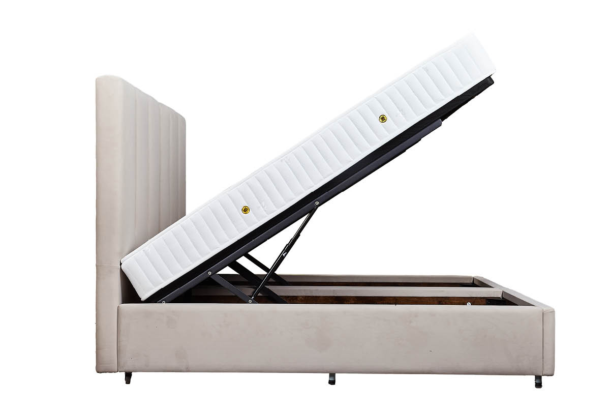 מיטה מרופדת עם ארגז אחסון תחתון נפתח כלפי מעלה