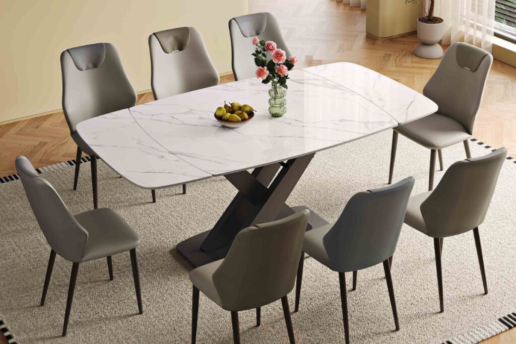 פינת אוכל – שולחן מודרני דגם נשר קרמיקה פורצלן – מתרחב + אפשרות ל-6 כסאות